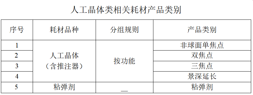 一是人工晶体类相关耗材(不包括硬性人工晶体、有晶体眼人工晶体) ,包含可与其配套使用的推注器。属于配套招标。