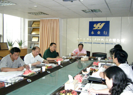 2009年6月26日,省市国土资源部门有关领导来永业行座谈武汉市集约利用课题